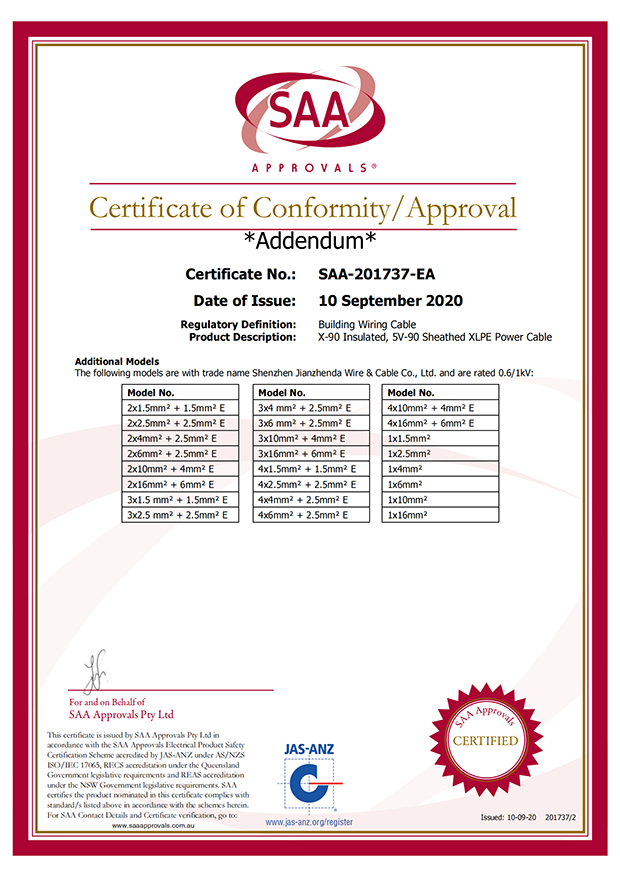 深圳建圳達電線電纜有限公司,成立于2000年,是一家電線電纜制造商,我們通過了世界各地不同市場的多數(shù)認(rèn)證,如:CCC、RoHS、CB、SAA、TUV、VDE、PSE、BPS、UL、CSA。我們根據(jù)定制產(chǎn)品不斷更新新的認(rèn)證。經(jīng)過數(shù)十年的發(fā)展,我們與來自世界各地的客戶建立了長期的合作關(guān)系。我們曾經(jīng)是菲律賓機場,,柬埔寨的電力站,美國的醫(yī)院,工廠,埃塞俄比亞的水電站項目。我們是一家值得信賴的電線供應(yīng)商。